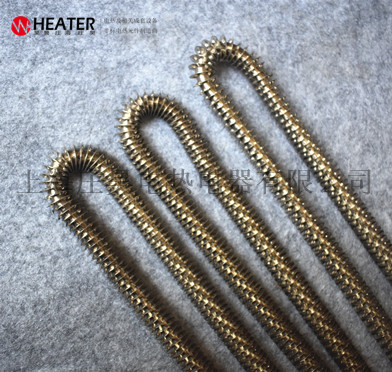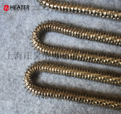 产品简介:翅片式电热管(散热片式电热管)采用优质不锈钢、改性氧化镤粉、高电阻电热合金丝、不锈钢散热片等材料,通过先进的生产设备和工艺制作而成,并进行了严格的质量管理,该系列产品可以安装在吹风管道中或其它静止、流动空气的加热场合。 散热片电热管是在普通元件表面缠绕金属散热片,与普通元件相比散热面积扩大了2~3倍,即翅片元件所允许的表面功率负荷是普通元件的3~4倍。由于元件的长度缩短,使得本身的热损失减小,在相同的功率条件下,具有升温快、发热均匀、散热性能好、热效率高、使用寿命长、加热装置体积小,成本低等优点。根据用户要求进行了合理的设计,便于安装。
