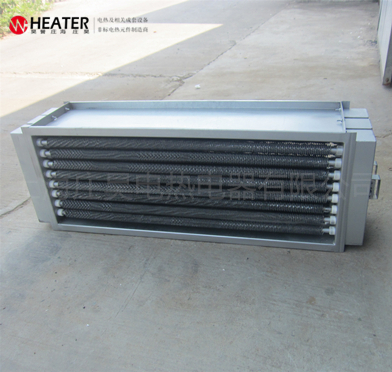 产品简介:风道加热器主要用于风道中的空气加热,规格分低温、中温、高温三种形式,在结构上的共同之处是采用了用钢板支撑电热管以减少风机停止时电热管的振动,在接线盒中都装有超温控制装置。低温型可直接安装在风道上,而中温型、高温型由于结构上的不同,在通道外壁至加热器接线盒夹有100mm 厚的保温材料,一方面减少整个通道的对外散热,另一方面也减少了接线腔内的温度。