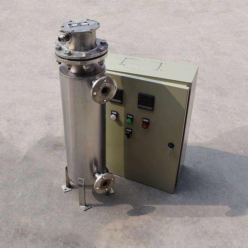 液体管道式加热器是一种新型的环保热能转换设备。它以电为能源,以空气为介质,通过泵体压力输入流动介质,在流动过程中吸收热能,达到工艺要求的温度,达到设备出口。通过设备出口处的温度检测装置和调节电加热器的功率,可以确保流体介质温度满足工艺要求的变化。借助设备传感器和保护装置,一旦介质温度过高,设备智能停止加热;一旦加热元件超温,加热也会停止,以避免加热元件过热损坏。